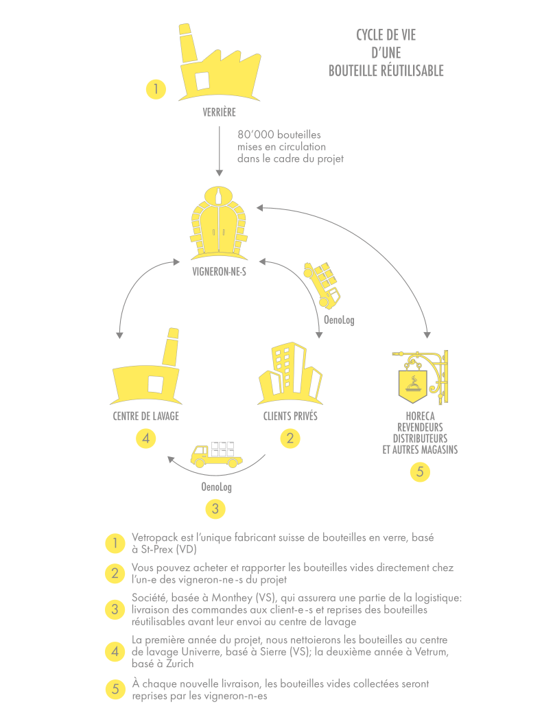 Vos vigneron-ne-s suisse-sse-s sont convaincu-e-s que la bouteille de vin de demain est lavable, réutilisable et durable.